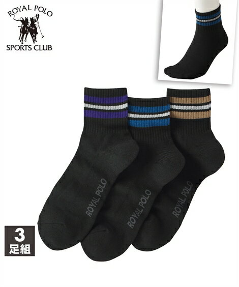 メンズ ROYAL POLO SPORTS CLUB ライン入底パイル編み ショート 丈 ソックス 3足組 ソックス 3足組 | 25.0〜27.0cm | ニッセン nissen