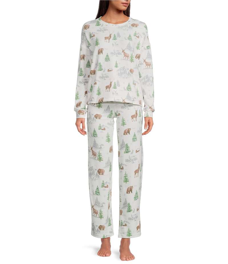ジャスミンアンド ジンジャー レディース アンダーウェア ナイトウェア プリント ニット Jasmine & Ginger Brushed Knit Snowy Woodland Print Long Sleeve Round Neck Long Holiday Pajama Set Snowy Woodland