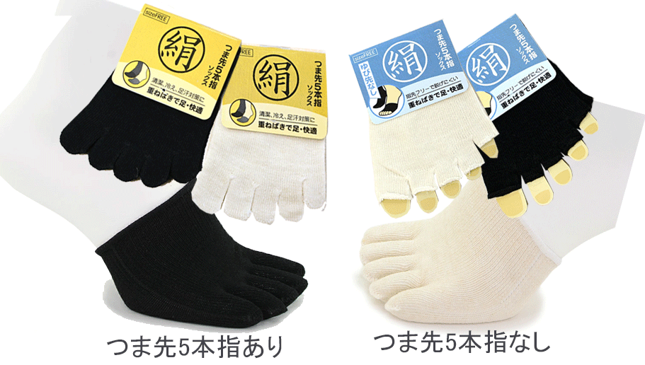 つま先シルク 5本指ハーフ健康ソックス天然繊維[絹混]つま先 あり ・なし「黒・生成り」メンズ レディース水虫を予防靴下重ね履き冷え 足汗対策 外反母趾 冷暖房対策 男女兼用 《メール便送料無料》