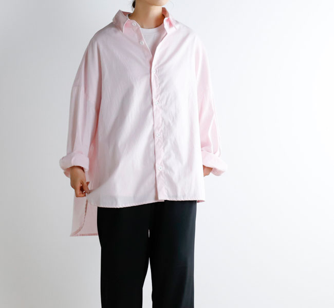 ・メーカー希望小売価格はメーカー商品タグに基づいて掲載していますBRAND : Yarmo ヤーモ ----------------------------------------------------------------------- NAME:Oversized Shirt_Cordlane オーバーサイズシャツ YAR-24SS S24 ----------------------------------------------------------------------- Yarmo ヤーモ取り扱いスタートしました。 コードレーンコットンを使用したオーバーサイズシャツ。 コードレーンとはシアサッカーと並ぶ、サマーシーズンの代表的な生地で コットン素材の平織地に細かいヨコ畝が表れた細い畝織り地のことで、全体にハリとコシの強い生地で、清涼感と清潔感が魅力の素材です。 生地の質感を生かしたピンクとサックスで清潔感と清涼感のあるシャツ。 このゆるさを活かし1枚でも良し、前を開けてバサッと羽織っても良しのオーバーサイズシャツです。 Yarmo ヤーモ 1898年、イギリス・グレートヤーモスにて創業されたワークウェアを中心に展開するファクトリーブランド。インダストリアル・ワークウェア、マリンウェアの生産に強みを持ち、イギリスの国防省やエネルギー関連企業、製薬企業などのニーズに答えてきたブランド Pink Sax Black ■サイズ F:着丈前65cm 着丈後80cm 身幅75cm 肩幅71cm ■生産: ENGLAND ■素材:COTTON 100% ■カラー: Pink/Black/Sax