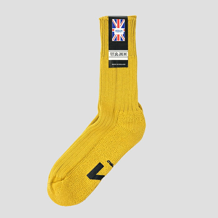 Yarmo定番のCUSHION WORK SOCKS。 素材には肌触りのよさと耐久性を合わせもつコットンとナイロンの混紡素材を使用。 クッション性をもたせたソール部分は吸湿性にも優れているので、快適な履き心地を味わえます。 足裏にあしらわれた大きなサイズ表記がデザインのポイントになり、アイコニックに主張。 リブ編みと素材の風合いをいかし、くしゅっとさせて履くバランスも雰囲気がでるのでおすすめです。 INCAは目を引く鮮やかな色合いのマスタードカラー。 足元にアクセントを生み、コーディネートを印象的に仕上げる一足です。 素材 コットン90%, ナイロン10% サイズ ・S: 22.5-25.0cm ・M: 25.0-28.0cm 特徴 MADE IN ENGLAND ご注意 ・タグなどに記載の取り扱い上の注意や洗濯表示を必ずご確認ください。 ・スマートフォン・PC等の液晶ディスプレイの特性上、実際のカラーと異なって見える場合がございます。あらかじめご了承ください。 ・購入時に表示される「お届け日数」は目安となります。北海道・九州・沖縄・離島エリアについては、表記よりも追加で1〜2日ほどかかる場合がございます。