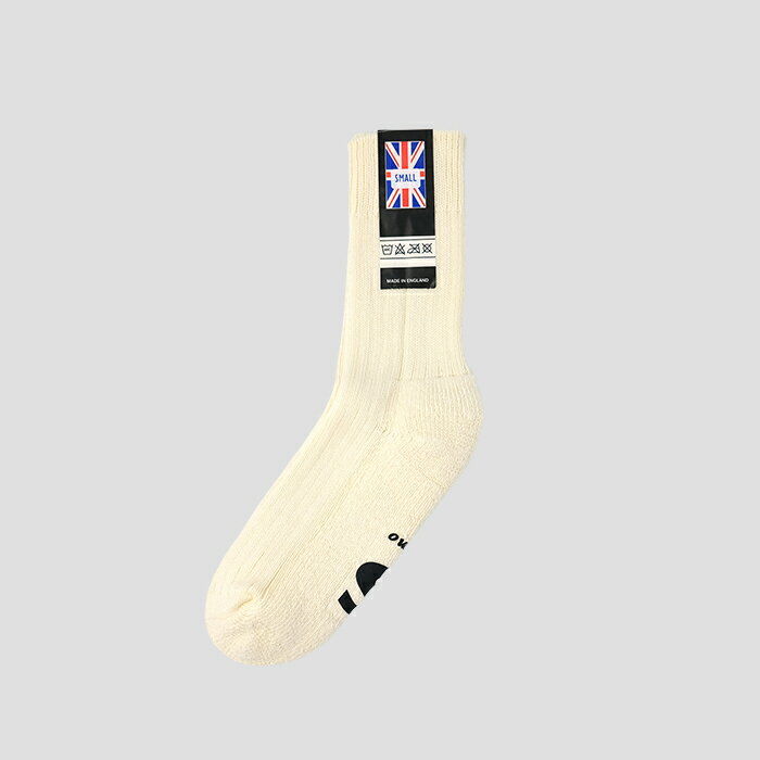 Yarmo定番のCUSHION WORK SOCKS。 素材には肌触りのよさと耐久性を合わせもつコットンとナイロンの混紡素材を使用。 ふかふかとしたクッション性を感じられるソール部分は、吸湿性にも優れているので快適さは抜群です。 足裏にあしらわれた大きなサイズ表記がデザインのアクセントになっています。 リブ編みと素材の風合いをいかし、あえてくしゅっとさせて履くバランスも雰囲気がでるのでおすすめ。 WILD OATはマイルドなホワイトカラー。あらゆるスタイリングに取り入れやすい万能な一足です。 素材 コットン90%, ナイロン10% サイズ ・S: 22.5-25.0cm ・M: 25.0-28.0cm 特徴 MADE IN ENGLAND ご注意 ・タグなどに記載の取り扱い上の注意や洗濯表示を必ずご確認ください。 ・スマートフォン・PC等の液晶ディスプレイの特性上、実際のカラーと異なって見える場合がございます。あらかじめご了承ください。 ・購入時に表示される「お届け日数」は目安となります。北海道・九州・沖縄・離島エリアについては、表記よりも追加で1〜2日ほどかかる場合がございます。