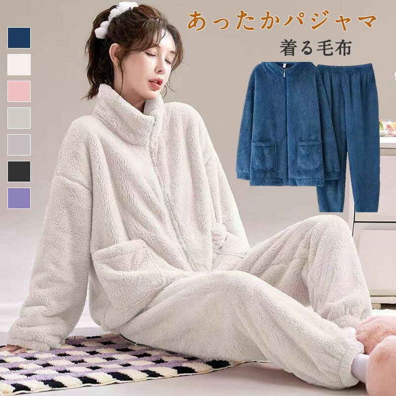 着る毛布 パジャマ レディース ルームウェア 冬 暖かい パジャマ ナイトウェアあったか もこもこ 上下セット 部屋着 長袖 秋冬 大きいサイズ ハイネック 前開き ストレート 裏起毛 着る毛布 寝間着 ギフト プレゼント 冬物 敬老の日 寒さ対策