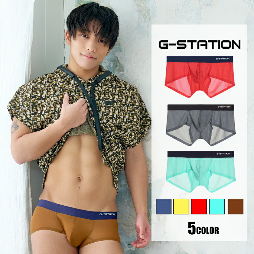 メンズボクサー G-Station/ジーステーション ウエスト&足口シームレス DEWTY SKIN ボクサーパンツ ボリューム 立体縫製 メンズ 男性下着 タグレス 凸フロント シームレス