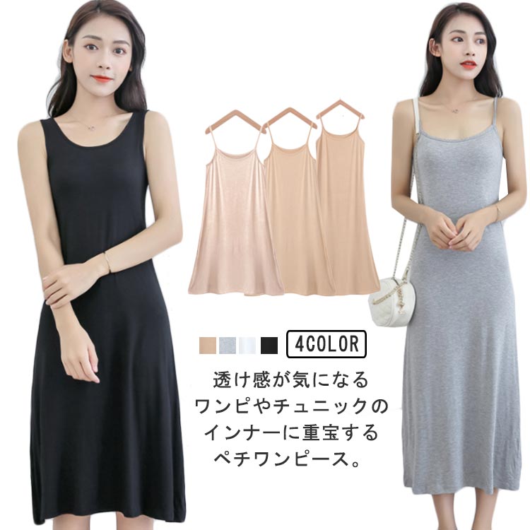 ペチコート スリップ ノースリーブ インナーワンピース 部屋着 タンクトップ キャミソールワンピース ペチコート 選べる着丈 膝丈 ロング丈 透け防止