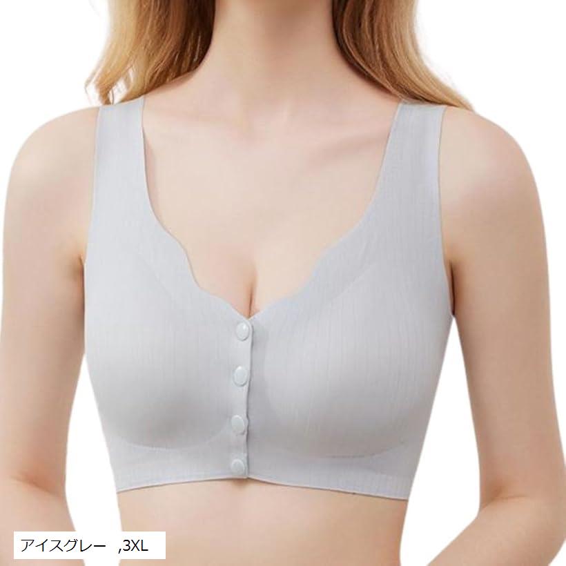 看護師監修 乳がんブラジャー パッド対応 前開き ノンワイヤー 術後ケア用 (アイスグレー, 3XL)