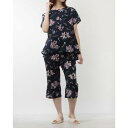 リラフェス リラFes 綿100%クレープ素材 リラクシングウェア上下セット(フラワーネイビー)