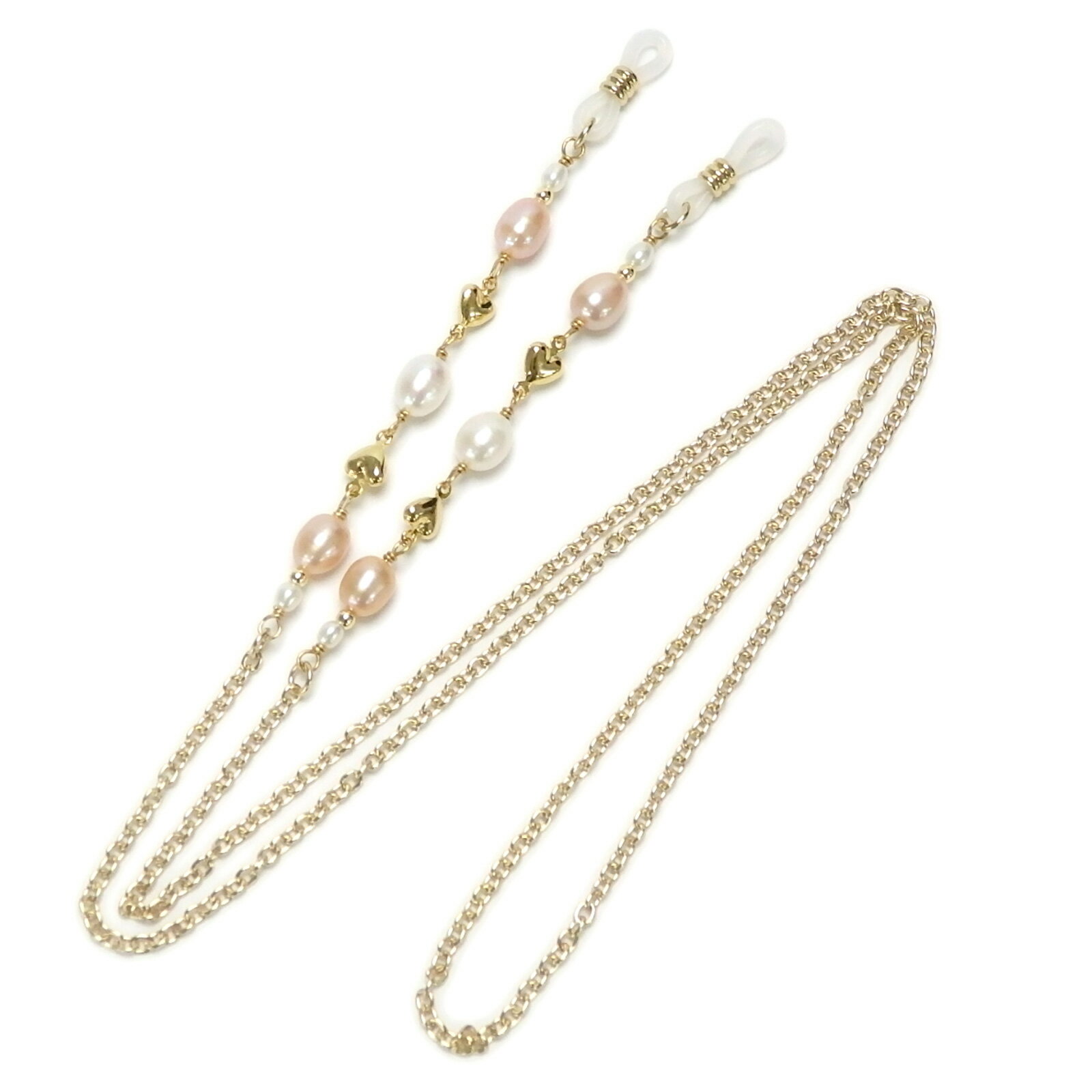 メール便 メガネチェーン 淡水真珠 めがねチェーン ほんのりオレンジ プチハート 淡水パール 眼鏡 チェーン ゴールドカラー ホワイトデー ギフトに プレゼントに