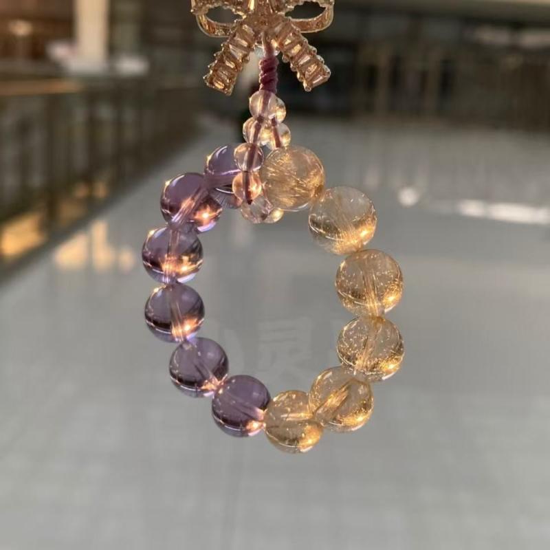 ・素材: ガラス/琉璃・色: 紫水晶,金発晶8mm・スタイル: 軽奢風・款式: 箱包掛飾・图案: 小熊,小猪,小動物・流行元素: 流星雨・スタイル分類: ファッション通勤・流行元素分類: 自然