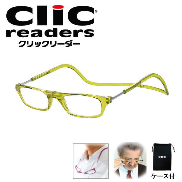 [新色レモンライム]老眼鏡 正規品 クリックリーダー CliC readers 磁石 首掛け おしゃれ シニアグラス リーディンググラス 男性用 女性用 マグネット 開閉式 読書用メガネ 辞書 新聞 40代 50代 カジュアル 母の日 父の日 敬老の日 贈り物 プレゼント