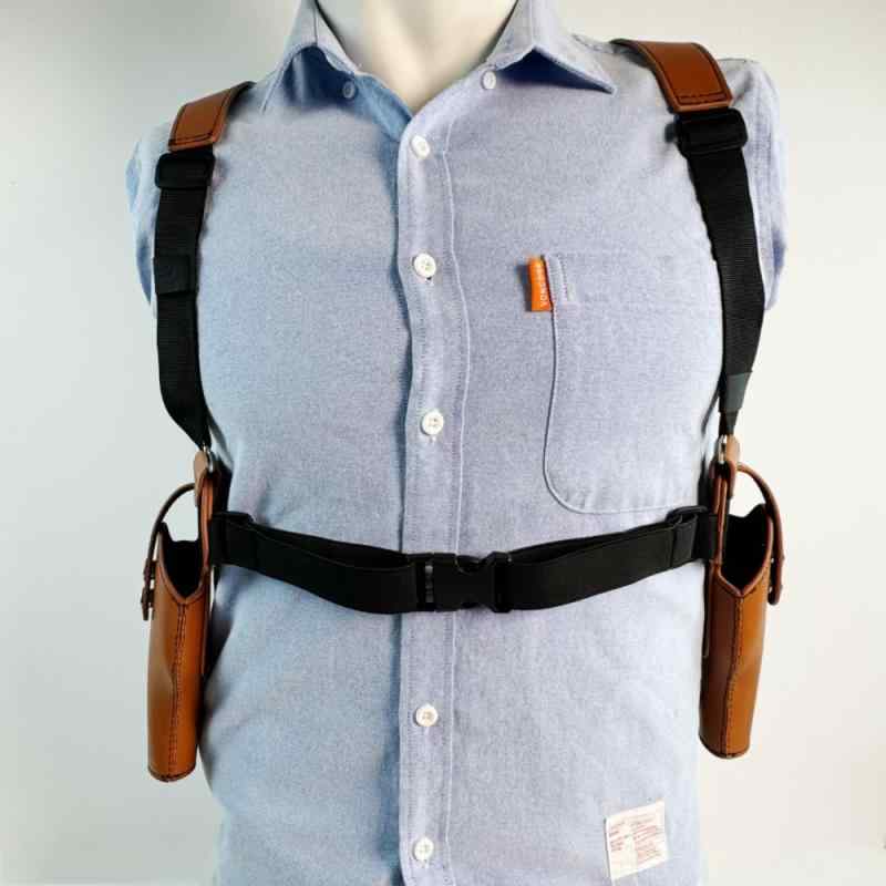 ホルスター 男女兼用 牛革 本革 タクティカル トレーニング ダブルガン ダブルショルダー 脇下 ハンドガン ピストル 軽量 黒色 ダークブラウン アウトドア スポーツ 92式 1911