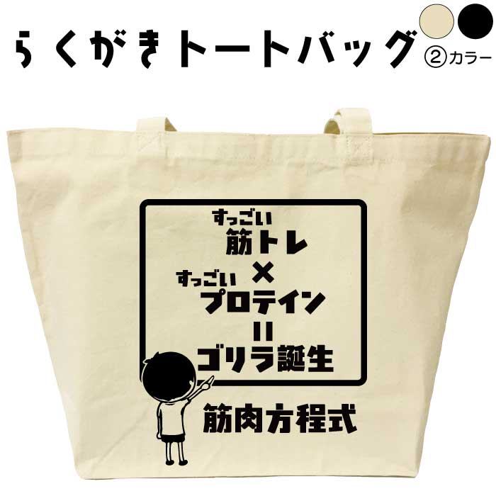 すっごい筋トレ×すっごいプロテイン=ゴリラ誕生 らくがきトートバッグ トレーニングバッグ 筋トレ ジムバッグ メンズ レディース おもしろトートバッグ おもしろバッグ オリジナルバッグ 名前入りバッグ 通勤バッグ 綿 布 大きめ 黒 誕生日 名入れ 筋肉好きプレゼント