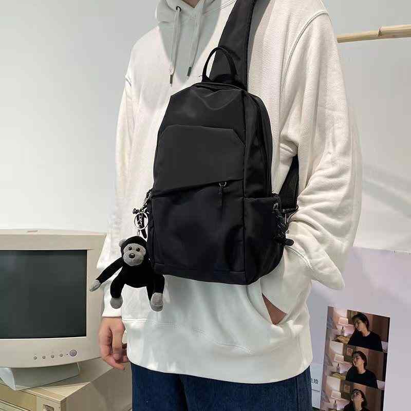 メンズ バック 斜めがけ チェスト ショルダー 男女兼用 カジュアル スポーツ ナイロン シングル ジッパー 柔らかい シンプル おしゃれ 黒 キーホルダー ゴリラ 恐竜