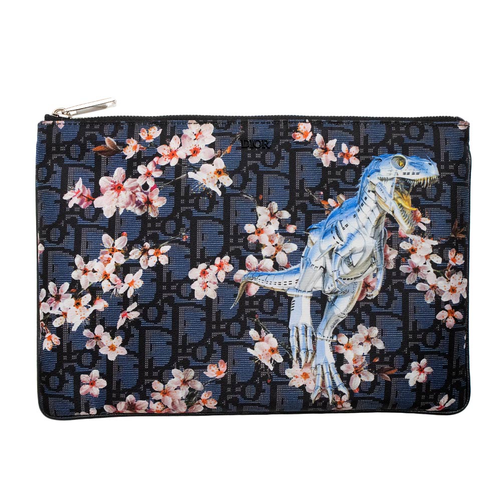 【新品・未使用品】ディオール DIOR トロッター 空山基コラボ 恐竜ロボット 桜モチーフ クラッチバッグ ポーチ ナイロン ネイビー 紺 シルバー金具 2SPCA224 箱付
