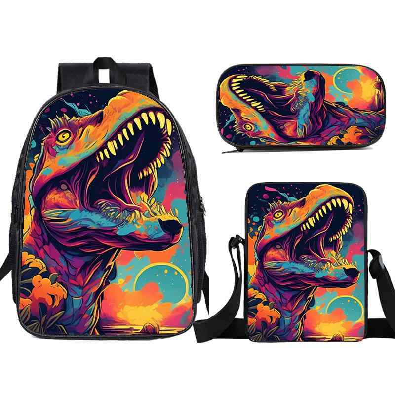 リュックサック キッズ 子供 男の子 女の子 小学生 中学生 恐竜柄 カートゥーン かわいい 3点セット スクールバッグ バックパック ポリエステル 通学 遠足 普段使い レジャー デイパック