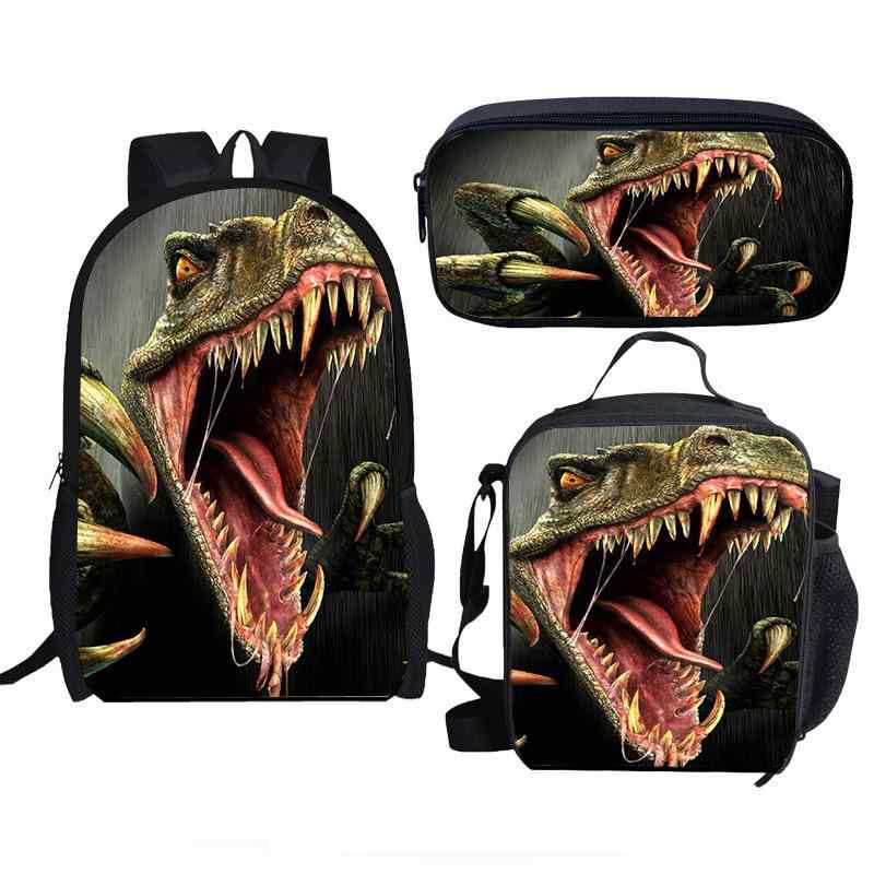 リュックサック キッズ 男の子 女の子 ジュラシック・ワールド 恐竜 スクールバッグ バックパック ランチバッグ お弁当袋 ペンケース 筆箱 通学 遠足 普段使い ポリエステル 軽量 3点セット