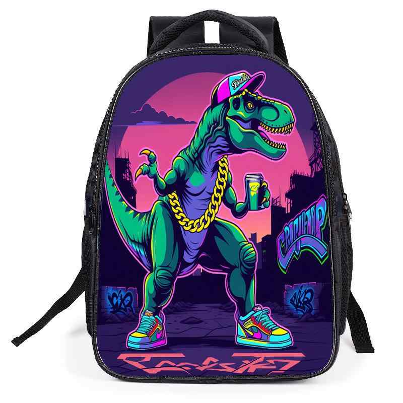 リュックサック キッズ 子供用 学生用 男女兼用 恐竜柄 アニメ キャラクタープリント 大容量 二層式 ダブルポケット 多収納 通学 普段使い バックパック デイパック ポリエステル 軽量 シンプル カジュアル