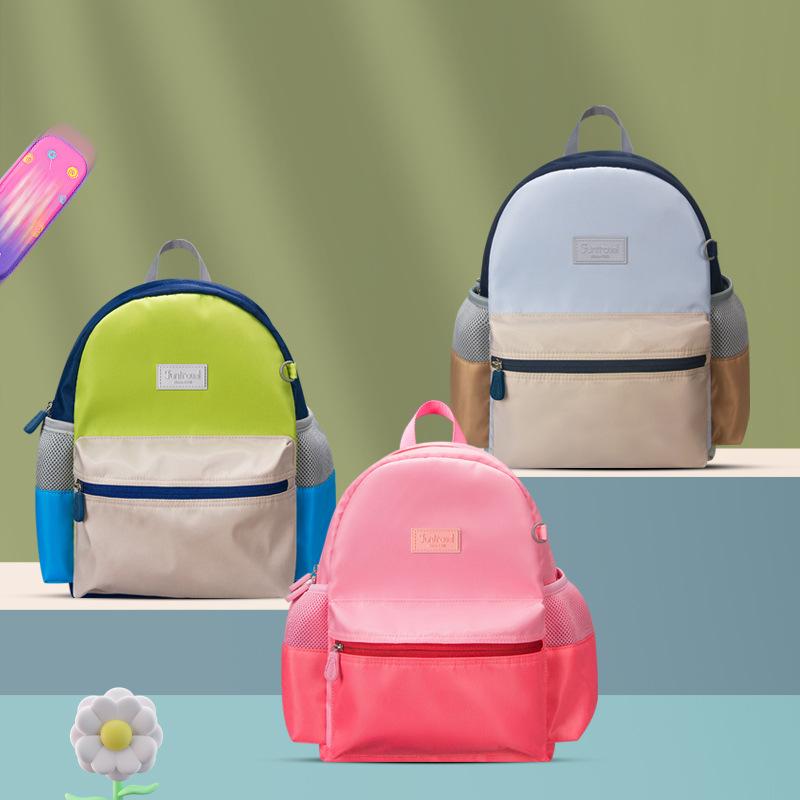 ・カラー展開: ベージュグレー、ベージュグリーン、スイカレッド、カートゥーンデザート、カートゥーンデザート・ピンク、かわいい恐竜・対象: ユニセックス・主な素材: ポリエステル・裏地: ナイロン・柄: 無地・スタイル: キュート、遊び心・機能: 通気性、防水、超軽量、拡張可能、負担軽減、背骨保護・サイズ展開: S (約24×13×32cm)、L (約27×14×36cm)・対象学年: 幼稚園(年長)・背負いシステム: エアークッションショルダーストラップ