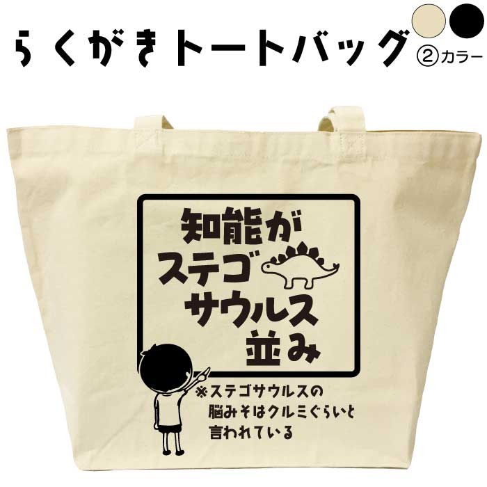 知能がステゴサウルス並み らくがきトートバッグ おもしろトートバッグ 名入れ おもしろバッグ 恐竜バッグ プレゼント オリジナルトートバッグ 名前入りプレゼント エコバッグ カバン メンズ レディース 綿 コットン 大きめ 黒 ナチュラル
