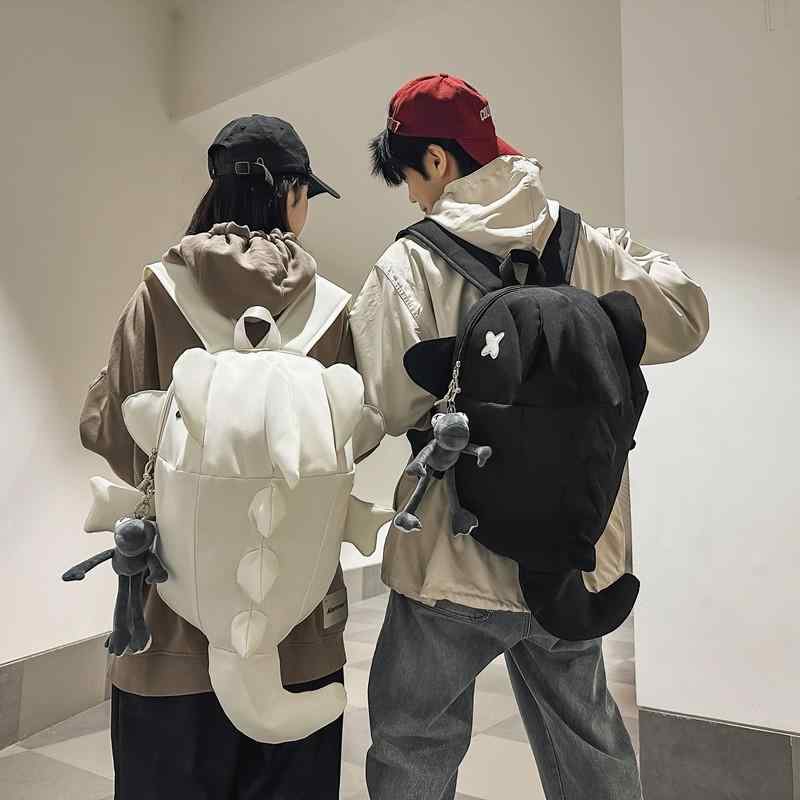 リュックサック ユニセックス 大容量 通気性 オックスフォード生地 14インチPC収納 A4対応 恐竜 サメ 怪獣 クリエイティブ 個性的 学生 通学バッグ かわいい カートゥーンデザイン ホワイト グレー ブラック カジュアル