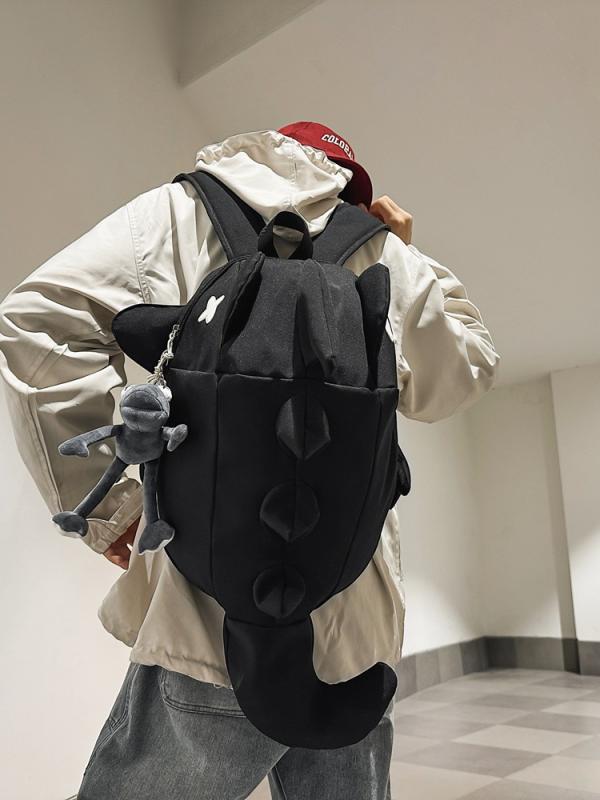 リュックサック ユニセックス 大容量 通気性 オックスフォード生地 14インチPC収納 A4対応 恐竜 サメ 怪獣 クリエイティブ 個性的 学生 通学バッグ かわいい カートゥーンデザイン ホワイト グレー ブラック カジュアル