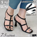サンダル レディース ナローストラップ スクエアトゥ ハイヒール くびれヒール 合成皮革 PUレザー エナメル シルバー 7.5cmヒール No.4176 22.5-24.5cm 黒 ブラック リバティードール