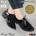 オックスフォードシューズ レディース 黒 レースアップシューズ アーモンドトゥ 内羽根 4cmヒール チャンキーヒール 革靴 紐 エナメル レザー 合成皮革 ブラック ブラウン 22.5-25cm No.5520 リバティードール
