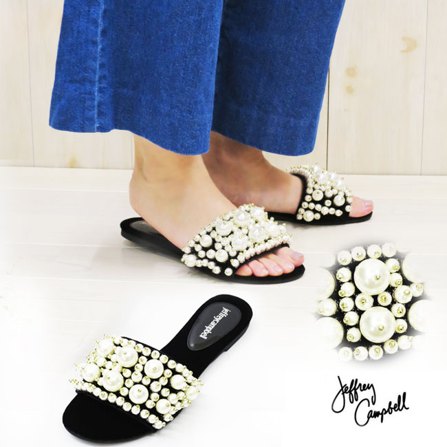 【★】ノークレームノーリターン品 Jeffrey Campbell ( ジェフリーキャンベル ) フラット サンダル パール 【 BLACK ベルベット 】 3718 スリッパ サンダル