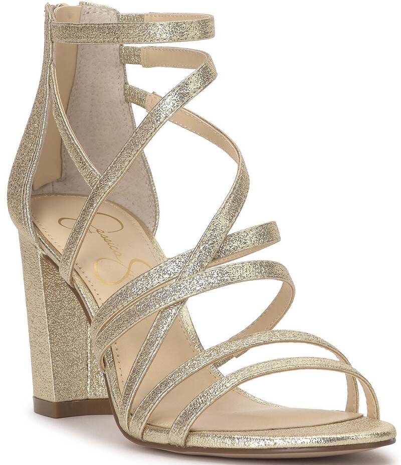 ジェシカシンプソン レディース シューズ サンダル ヒール Jessica Simpson Stassey Shimmer Strappy Block Heel Sandals Champagne シャンパン