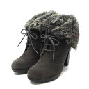 【中古】ジョニーモーク JOHNNY MOKE ファー付き スエード レースアップ ブーティ ダークブラウン 茶 37 約23.5cm レディース 【ベクトル 古着】 250312