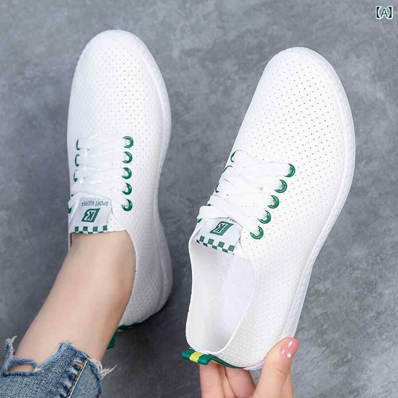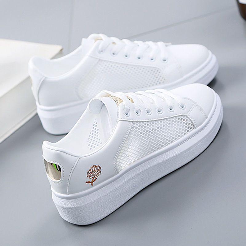 スニーカー レディース 通気性 メッシュ 白 韓国ファッション オールシーズン カジュアル 春夏 学生 通学 レザー キャンバス レースアップ フラット
