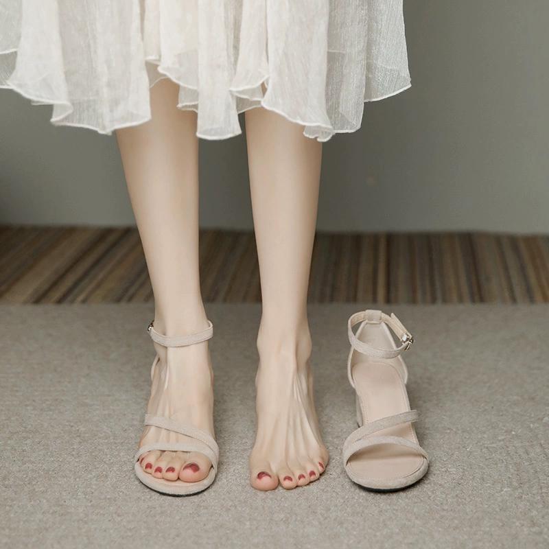 サンダル レディース ミドルヒール 太ヒール フレンチスタイル エレガント フェミニン チャイナドレス ラウンドトゥ スエード バックルストラップ 無地 春夏 スカートコーデ ワンピース ブライズメイド