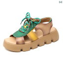 レディース ストラップサンダル レースアップ サンダル レディース 2025 夏の 通気性の ある レザー マフィン シューズ アウターウェア 厚底 ローマン ビーチ サンダル