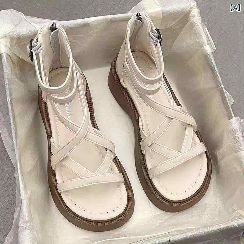 レディース ストラップサンダル 女性用 プラットフォーム ソール サンダル 2025 夏の 厚底の 高さを 高める クロス ストラップ ローマン シューズ サンダル