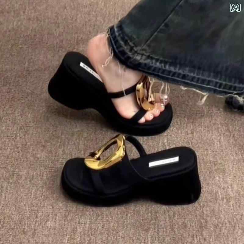 サンダル ゴムサンダル レディース ウェッジソール 小柄な 女性向け 厚底 メタル スクエアバックル スリッパ 夏用 アウター ウェッジ ハイヒール サンダル