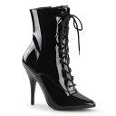 ショートブーツ レディース 欧米風 13cmヒール ピンヒール ポインテッドトゥ レースアップ 光沢PUレザー エナメル調 防水 ブラック ステージ ポールダンス イベント パーティー 秋冬