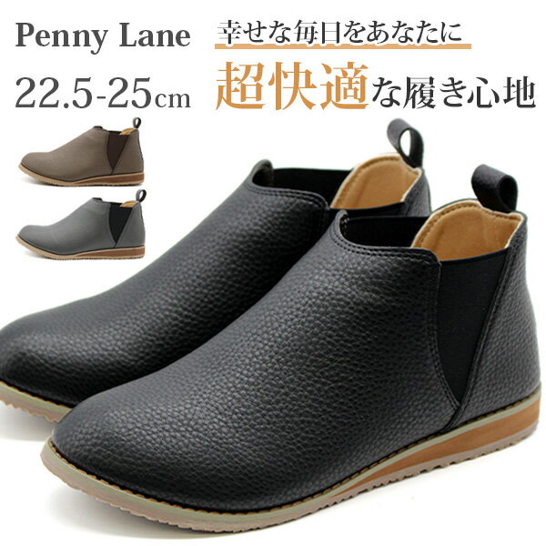 【送料無料】PENNY LANE ペニーレインサイドゴアシューズ ショートブーツ レザー調 軽い ナチュラル フラットシューズ ぺたんこ カジュアル 女性用 楽ちん 履きやすい かわいい シンプル 柔らかい 幅広 レディース nm-3182