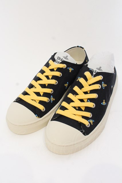 税込3980円以上購入で【送料無料】【USED】Vivienne Westwood / Low Top Canvas Plimsoll スニーカーヴィヴィアンウエストウッド ビビアン41(アウトソール約29cm) ブラック BABY ORBS 【中古】 O-25-03-16-053-sh-IG-ZH