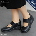 アシックス 商事 Lady worker(レディワーカー)黒パンプス レディス レディース ビジネス オフィス 通勤 ウェッジ ベルトタイプ 3E相当 通販限定 LO-18680