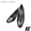 【試し履き1回交換送料無料】【取寄せ】Lady Worker スクエアトゥ ブラック パンプス LO-17460 約4.0cmヒール 5E相当 21.5cm~25.0cm シンプル 黒パンプス 就活 静音 リフト 足音 静か もちもち 触感 幅広 足幅 ゆったり