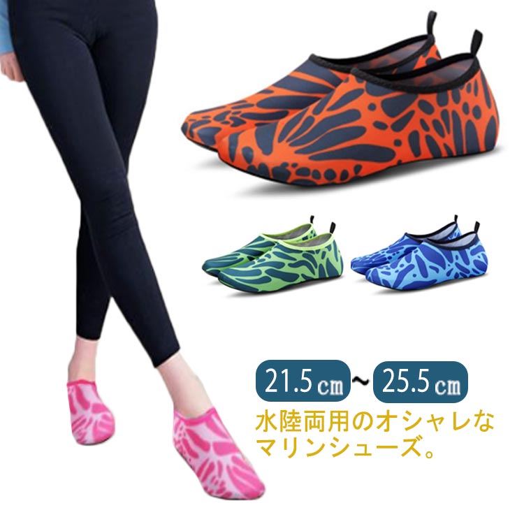 水陸両用のオシャレなマリンシューズ。やわらかくて通気性があって摩擦にも強い。TPR滑り止めソールで耐摩耗性と柔軟性に優れています。伸縮性がある履き口で履き脱ぎが楽で便利です。足の蒸し暑さを解消し、裸足のように快適にお使い頂けます。とても軽い素材で作られ、柔軟性に優れた軽量モデルになっています。折りたたみが出来るほどの柔軟性があるので、持ち運びも簡単です。 サイズS M L XL 2XLサイズについての説明S 適応脚長21.5−22cm M 適応脚長22.5−23cm L 適応脚長23.5−24cm XL 適応脚長24.5−25cm 2XL 適応脚長25.5−26cm素材表面:ポリウレタン 底:ゴム/布製色ピンク(ゴム底) ブルー(ゴム底) オレンジ(ゴム底) グリーン(ゴム底) ピンク(布製底) ブルー(布製底) オレンジ(布製底) グリーン(布製底)備考 ●サイズ詳細等の測り方はスタッフ間で統一、徹底はしておりますが、実寸は商品によって若干の誤差(1cm〜3cm )がある場合がございますので、予めご了承ください。 ●商品の色は、撮影時の光や、お客様のモニターの色具合などにより、実際の商品と異なる場合がございます。あらかじめ、ご了承ください。●製品によっては、生地の特性上、洗濯時に縮む場合がございますので洗濯時はご注意下さいませ。▼色味の強い製品によっては他の衣類などに色移りする場合もございますので、速やかに(脱水、乾燥等)するようにお願いいたします。 ▼生地によっては摩擦や汗、雨などで濡れた時は、他の製品に移染する恐れがございますので、着用の際はご注意下さい。▼生地の特性上、やや匂いが強く感じられるものもございます。数日のご使用や陰干しなどで気になる匂いはほとんど感じられなくなります。
