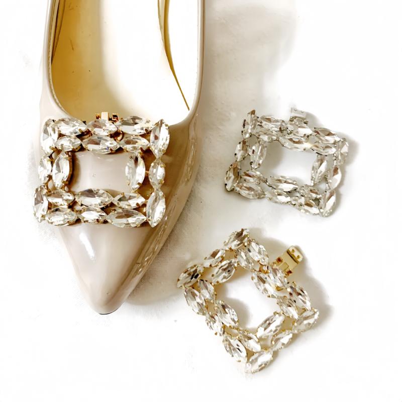 シューズアクセサリー レディース パンプス 装飾 ウェディング パーティー 冠婚葬祭 ハイヒール 着脱 メタル ワンタッチ 輝き おしゃれ 金 銀 ビジュー オールシーズン 華やか 高級感 エレガント キラキラ 付け替え
