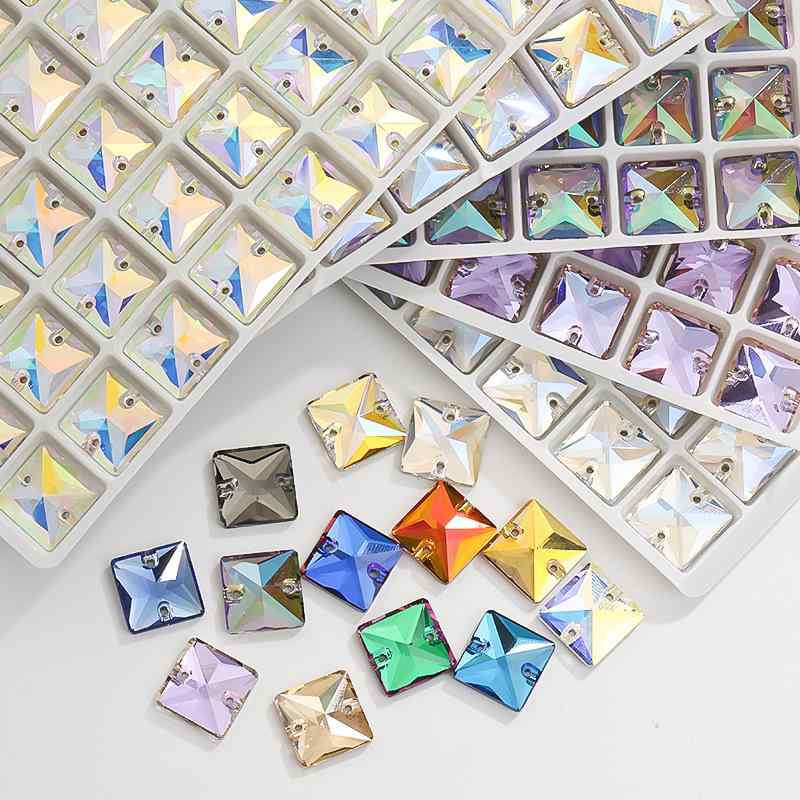 アクセサリー 正方形 水晶 飾り 石 平底 手縫い ラインストーン 防傷 二孔 靴飾り バッグ 服飾 装飾品 ピン クリスタル ジルコニア 風 ファッション アイテム 汎用 付け やすい デザイン