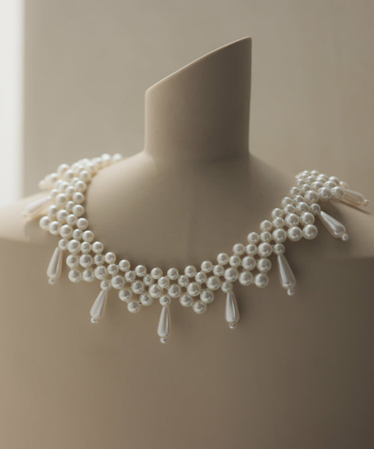 送料無料 アクセサリー ネックレス パールネックレス パールチョーカー 真珠 シャンデリア つけ襟 ホワイト オフホワイト 白「cawaii french」