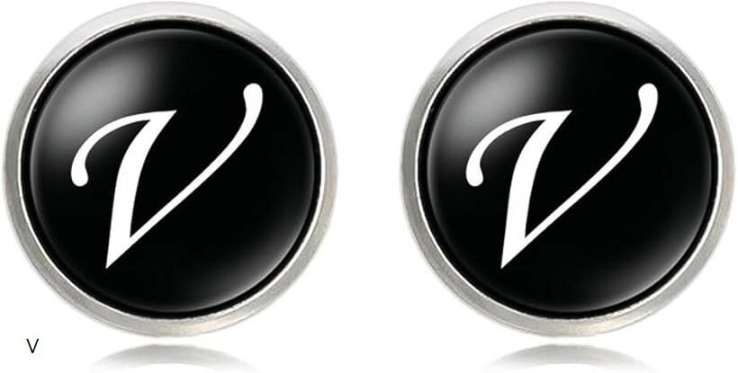 マローサム イニシャルカフス カフスボタン 英字 アルファベット スーツ フォーマル V (ブラック)
