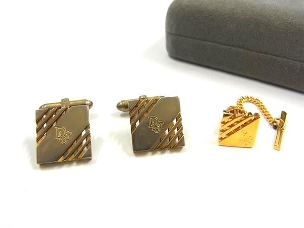 ChristianDior クリスチャンディオール ロゴプレート ネクタイピン カフスボタン カフリンクス 紳士 メンズ ゴールド系 DF1933 冠婚葬祭 結婚式 葬式