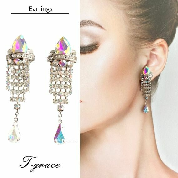 【送料無料】社交ダンス イヤリング ピアス オーロラクリスタル クリスタルガラス 大ぶり 衣装 トップス モダンドレス スカート ドレス ジュエリー 人気 上品 アクセサリー プレゼント ギフト 結婚式 レディース 華やか ウエディング ダンス パーティー キラキラ お出かけ