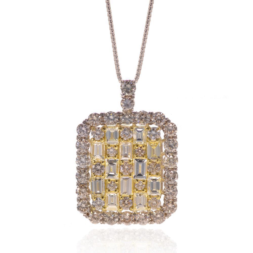 ネックレス レディース プラチナ 18金 K18 18K バゲットカット ダイヤモンド 3カラット ダイヤモンドネックレス イエローゴールド Pt950 日本製 刻印入り 鑑別書付き