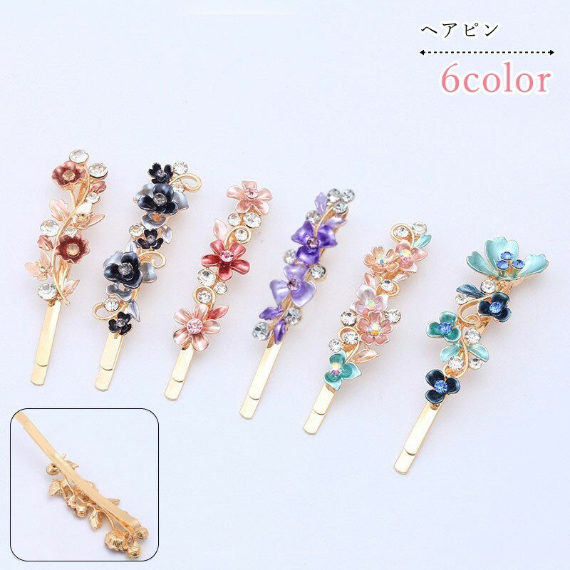 送料無料 ヘアピン 髪留め アメピン アメリカピン レディース 女性 ヘアアクセサリー ファッション雑貨 お花 フラワー ラインストーン フェミニン ガーリー 可愛い キュート ポップ カジュアル おしゃれ