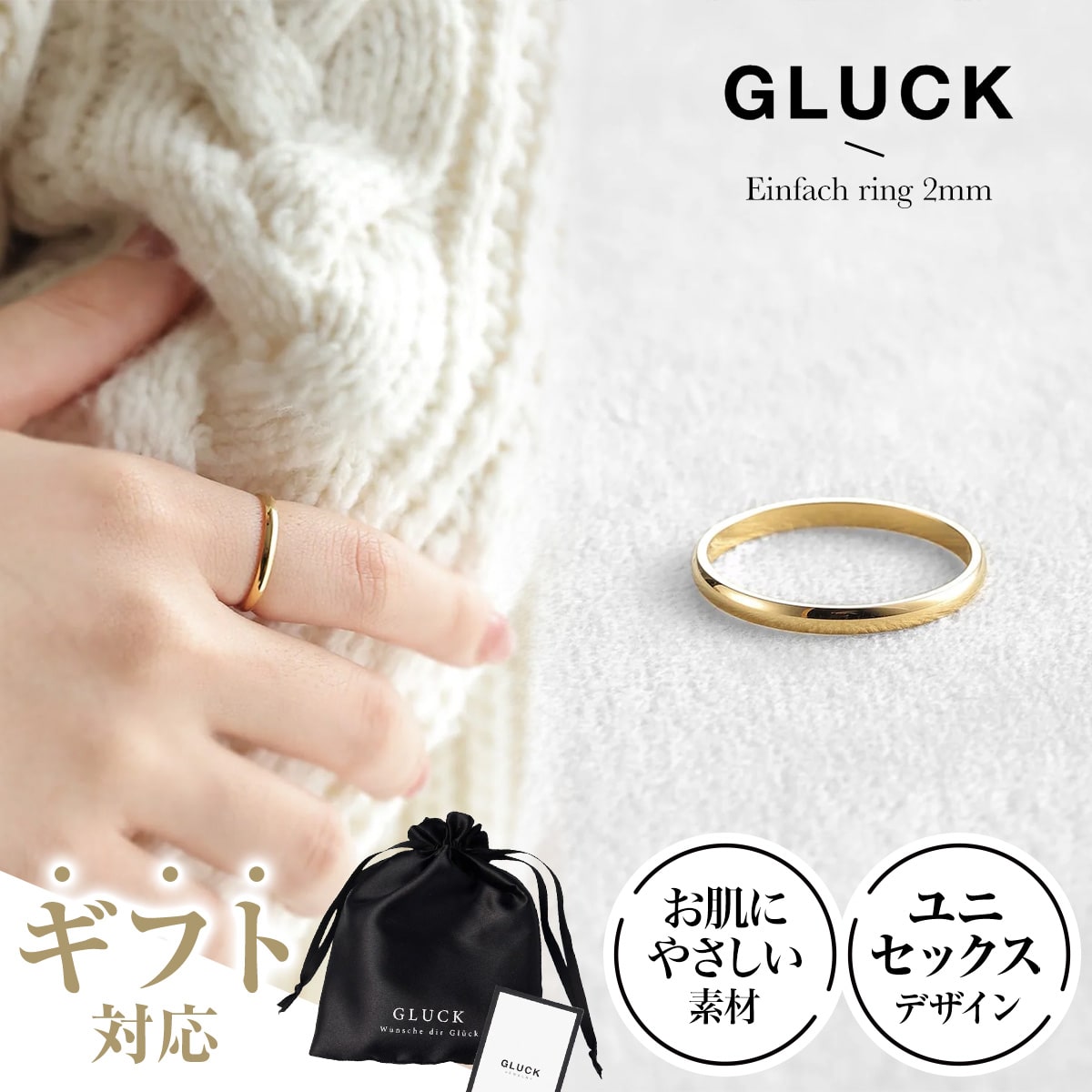 リング 指輪 アクセサリー レディース メンズ 金属アレルギー 錆び ゴールド シルバー ペア ペアリング お揃い ギフト 重ね付け つけっぱなし プレゼント クリスマス GLUCK
